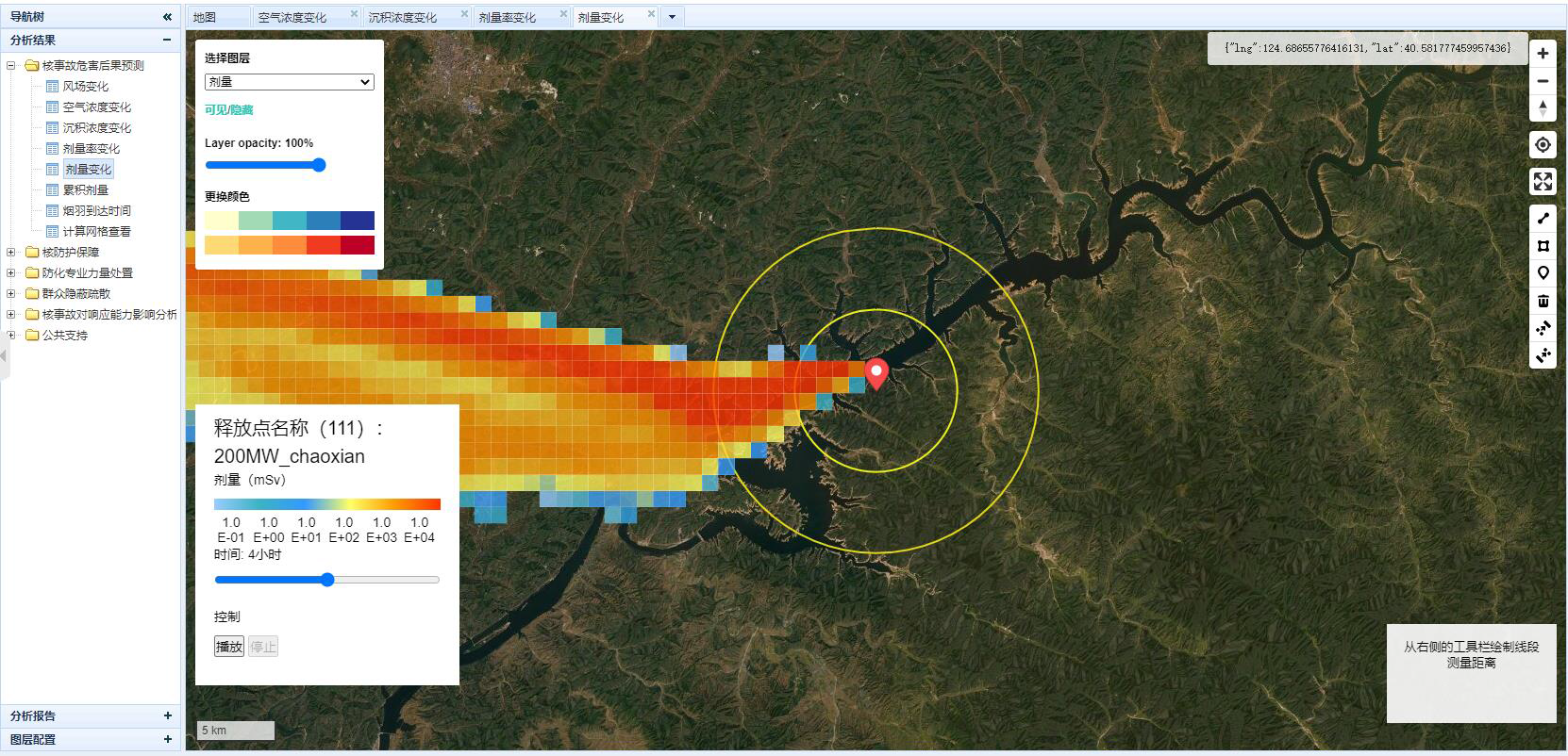 针对核素在大气和地表水中的扩散以及影响范围、影响程度,我司开发了基于CFD方法的软件,可以对大空间、广地域进行建模和仿真,效果图如下。