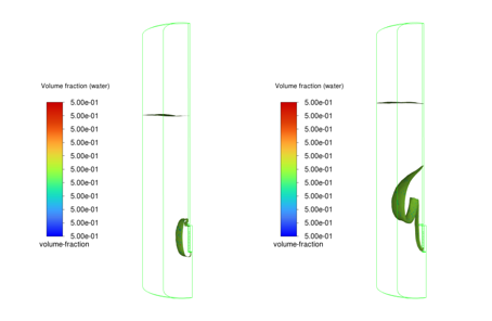 某电站汽轮机轴承箱温度传感器报警,观察轴承箱内润滑油,油位高、油位波动剧烈,对比分析认为是排油管内形成水跃,造成排油不畅,对此过程进行建模和仿真分析,并无水跃现象。初步判断是高速旋转的联轴器与波动的液位粘连,将滑油甩起造成的。联轴器线速度最高达150m/s,极易将滑油以很高的速度甩出,从而击打传感器造成误报警。经优化设计和仿真验证,该问题得以解决。