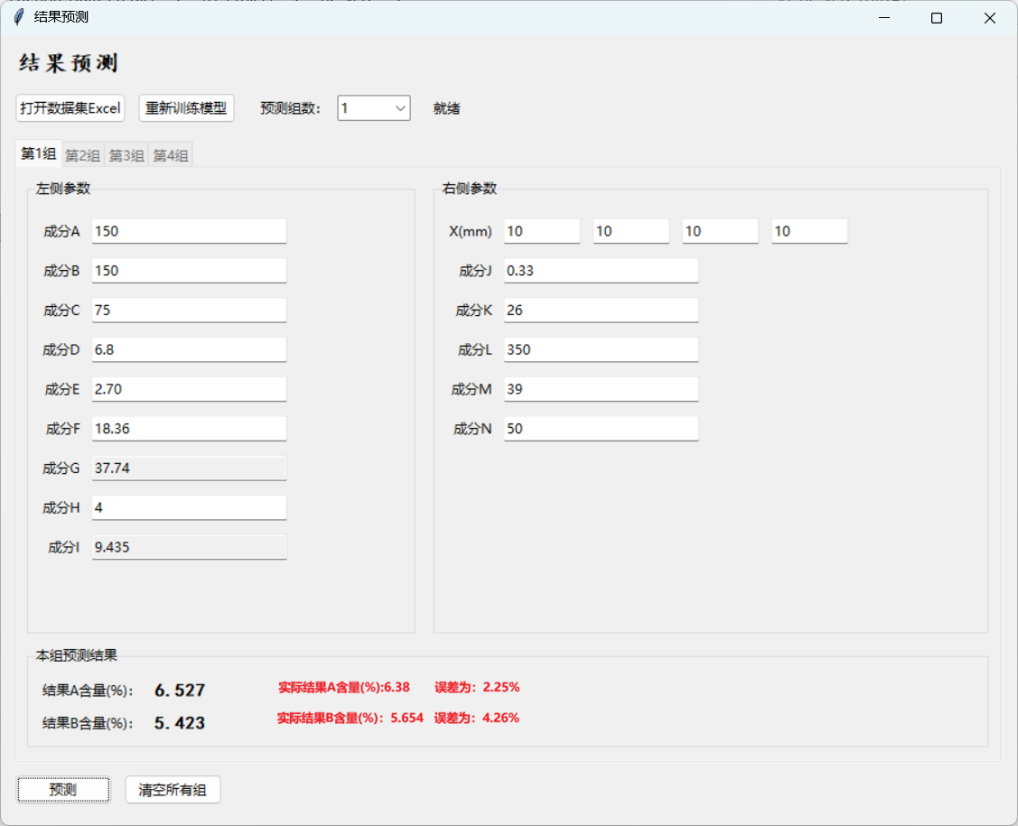 本模型旨在根据药丸喷涂工艺过程实验参数预测不同阶段的成分结果含量。我司开发了基于机器学习的针对该工艺过程的算法模型,并以已有的测试数据做输入进行模型训练,预测了其他工况下的组分结果。经优化后的模型可以很好的预测关键结果的值,为工艺过程的优化提供了重要的依据。